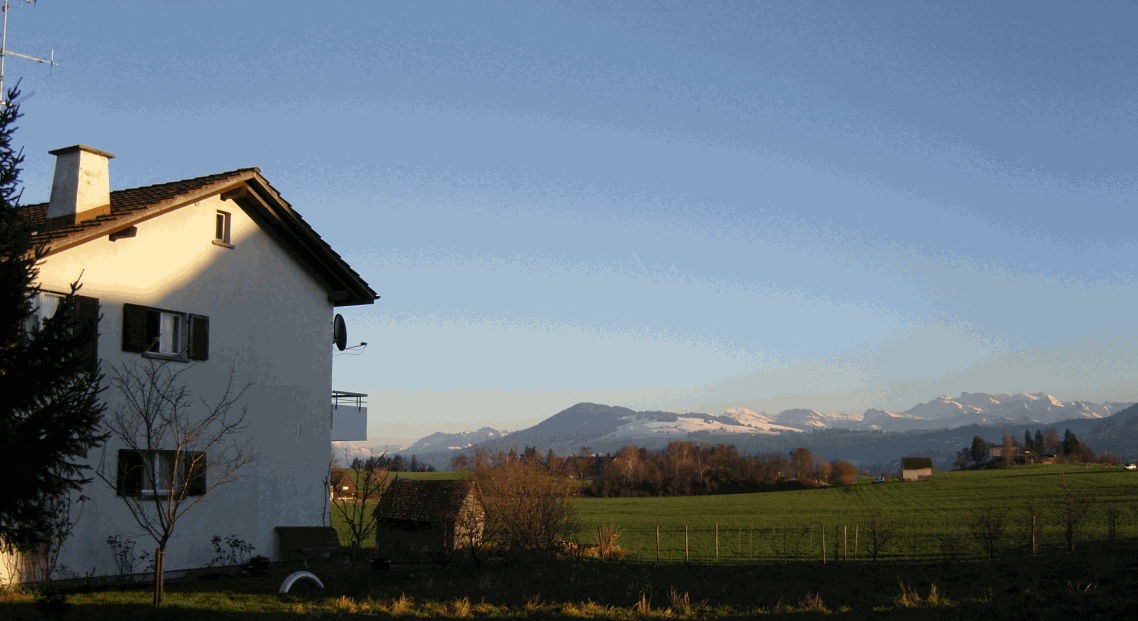 The rural area around the vacation home, loads you for staying in. Unverbautbare wonderful prospect into the mountains. And you reach the Stad Zurich within 25 minutes. To letting immediately or according to agreement.